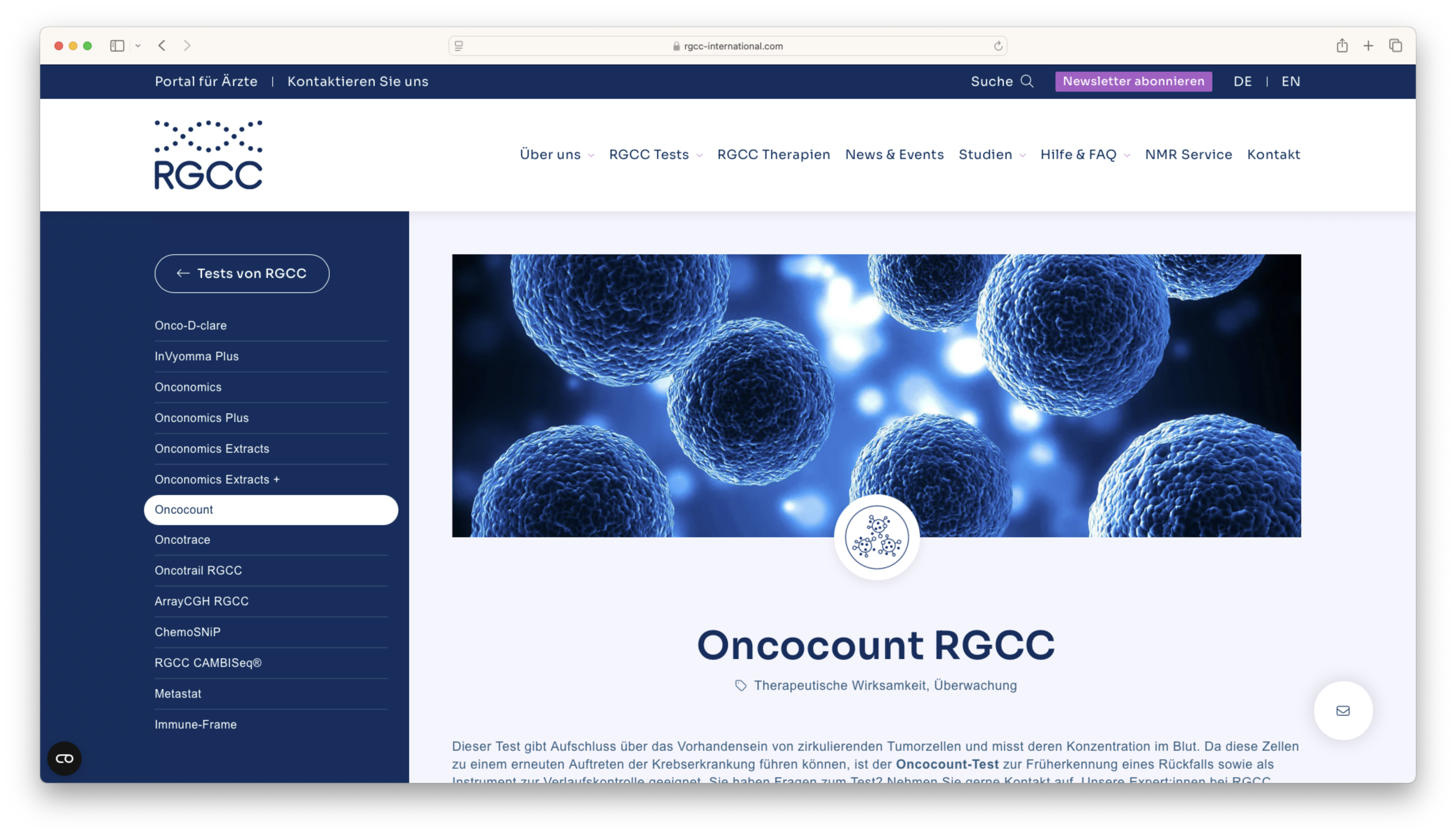 RGCC ist ein auf medizinische Genetik spezialisiertes Unternehmen, das 2004 gegründet wurde und seinen Hauptsitz in der Schweiz hat. RGCC ist auf die Entwicklung und Bereitstellung personalisierter Genetiktests zur Krebserkennung für Ärzte und Patienten spezialisiert. Zudem werden Tumore auf Sensitivität und Resistenz gegenüber Chemotherapie und einer Vielzahl natürlicher Substanzen getestet. RGCC ist aktiv an der Forschung und Entwicklung im Pharmabereich beteiligt.